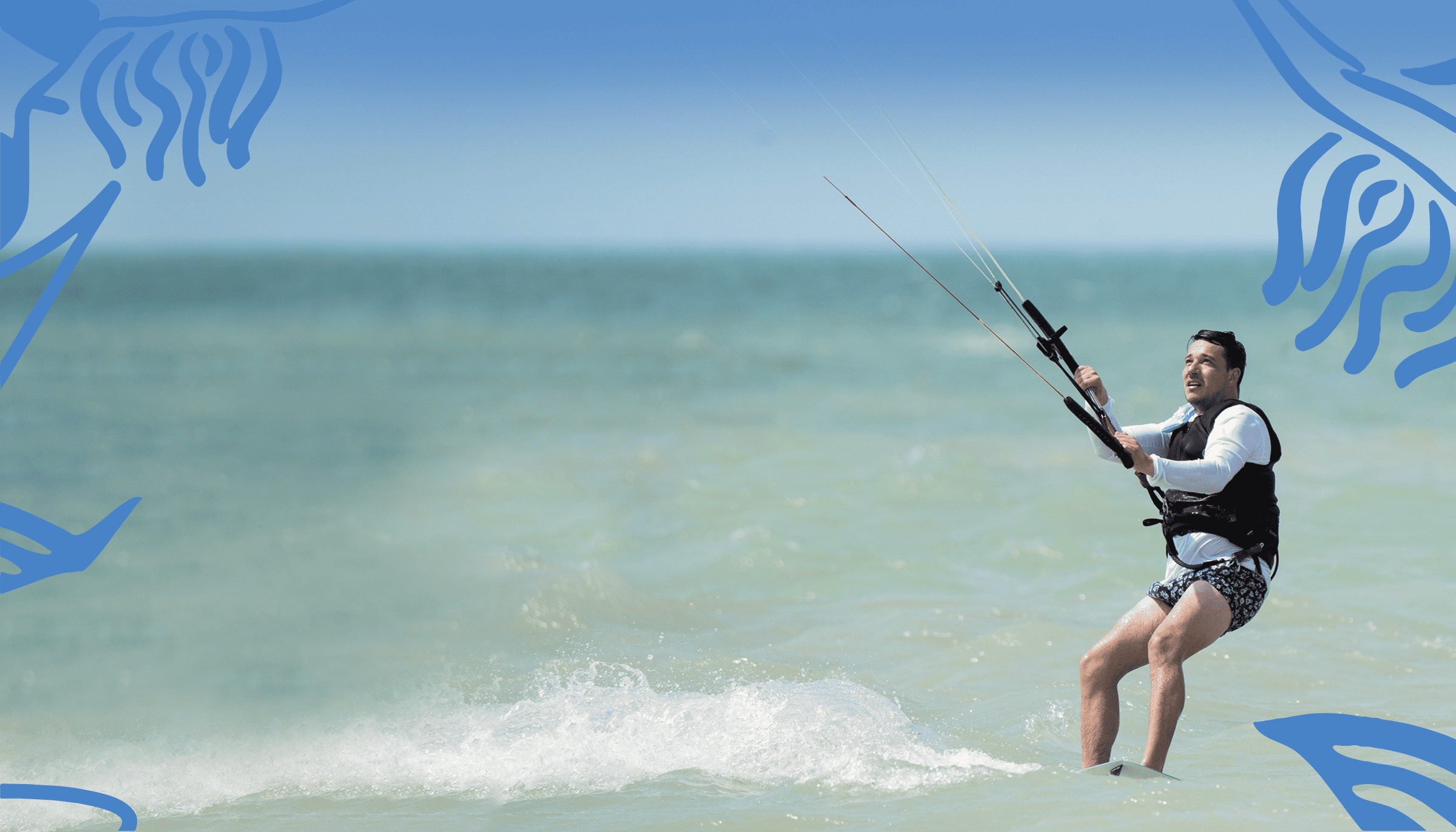 Nuestros campamentos y nuestras clases de kitesurf se realizan en Progreso, Yucatán, un lugar privilegiado con condiciones ideales para aprender kitesurf: viento constante, aguas cálidas, tranquilas, poco profundas y olas pequeñas.